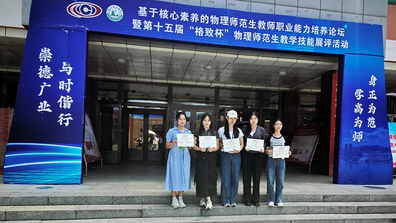 7月21日,由教育部基础教育物理教学指导专业委员会和中国教育学会物理教学专业指导委员会指导、《物理教师》编辑部与《中学物理》编辑部主办的基于核心素养的物理师范生教师职业能力培养论坛暨第十五届“格致杯”物理师范生教学技能展评活动在通化师范学院承办落下帷幕。玩滚球官网理学院、教师教育学院物理学专业邹思琪、彭靓林、潘子怡、罗佳宜、陈汝琪5名选手参与此次教学技能展评活动,荣获一等奖1项,二等奖3项,三等奖1项。